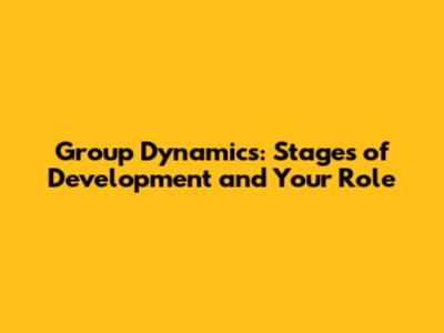 Group Dynamics: Stages Of Development And Your Role