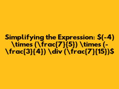 Simplifying: (-4) * (7/5) * (-3/4) / (7/15)